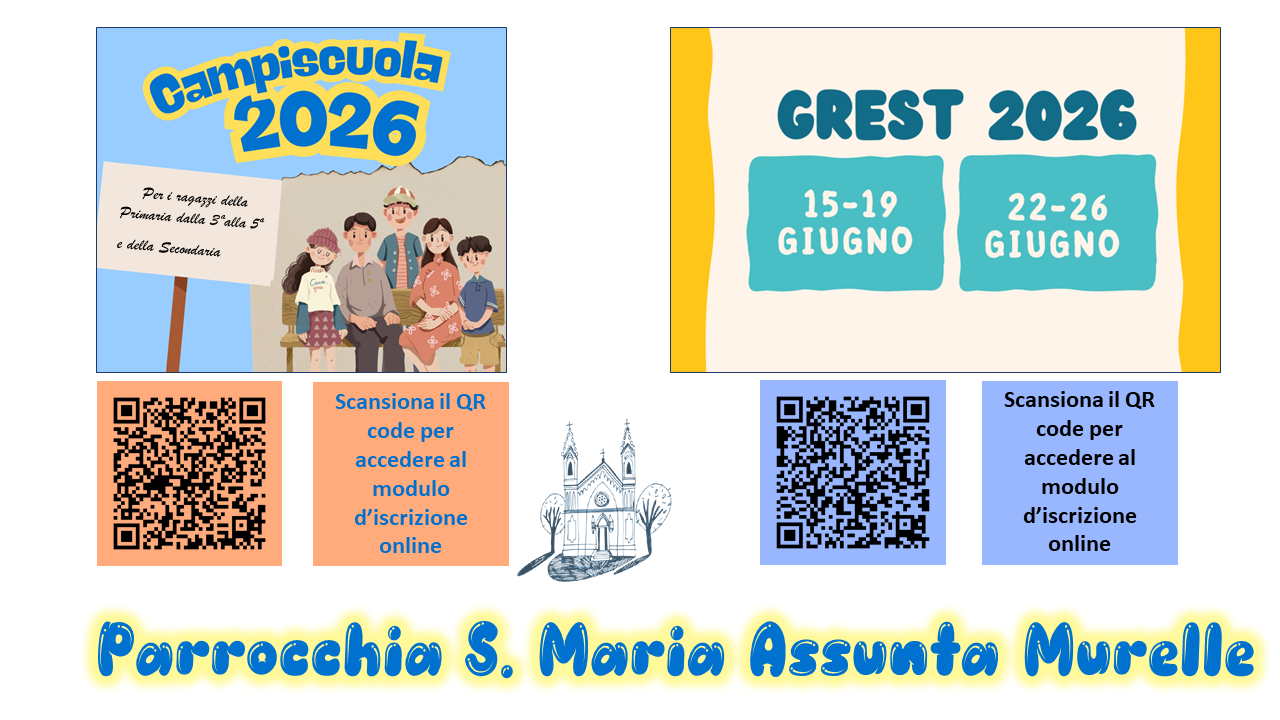 Clicca sopra l'immagine per iscriverti ai Campiscuola 2023 della parrocchia S. Maria Assunta di Murelle.